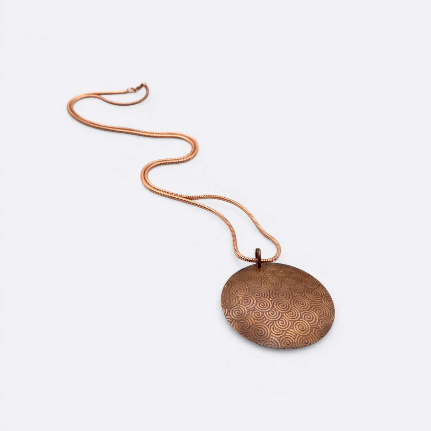 Collar Vayu reúne una cadena y un dije en cobre, creando una pieza con identidad, ligereza y significado.
