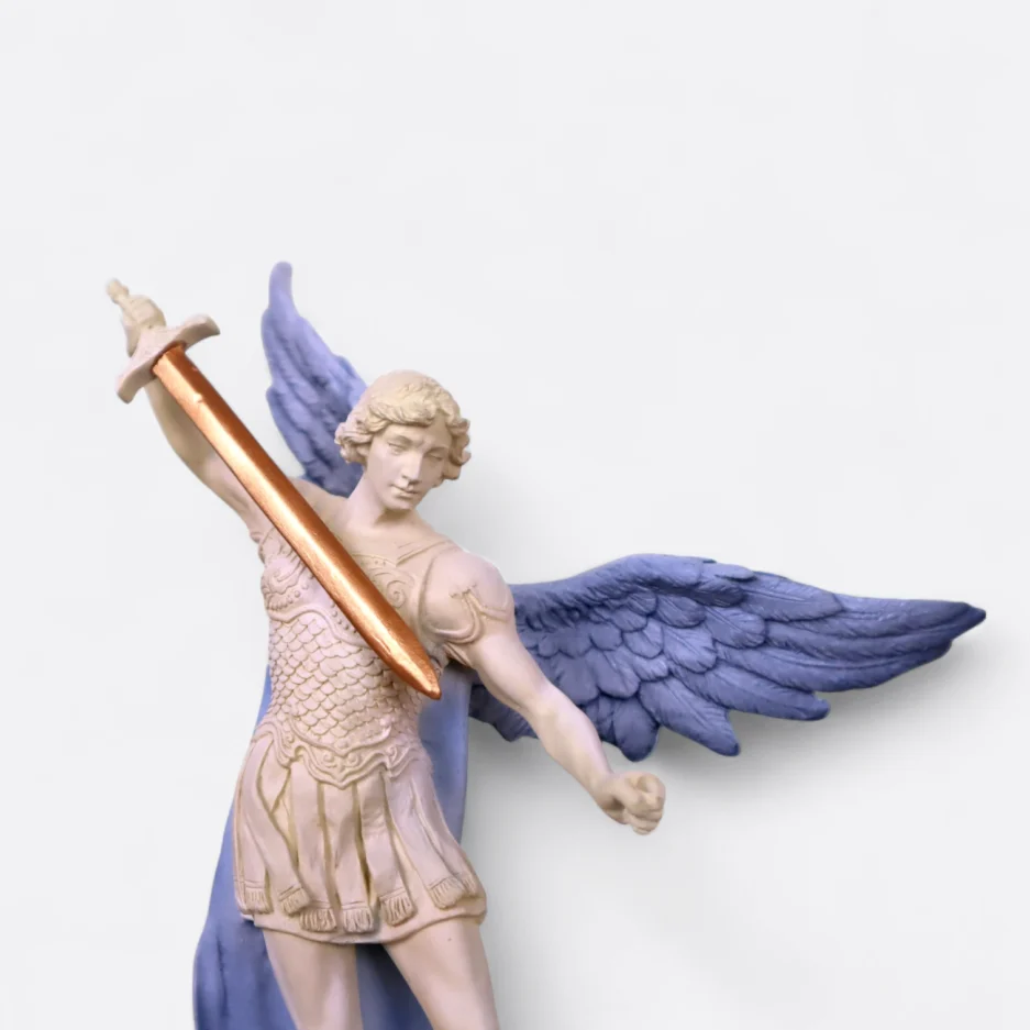 Esta estatua del Arcángel Miguel, hecha en resina de alta calidad, simboliza la fuerza y la protección divina.