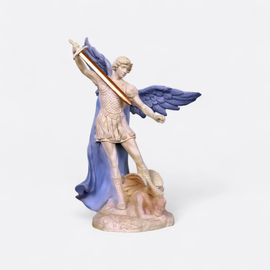 Perfecta para cualquier altar o rincón de devoción, esta figura es un recordatorio constante de la fortaleza espiritual y la protección divina en tu hogar.
