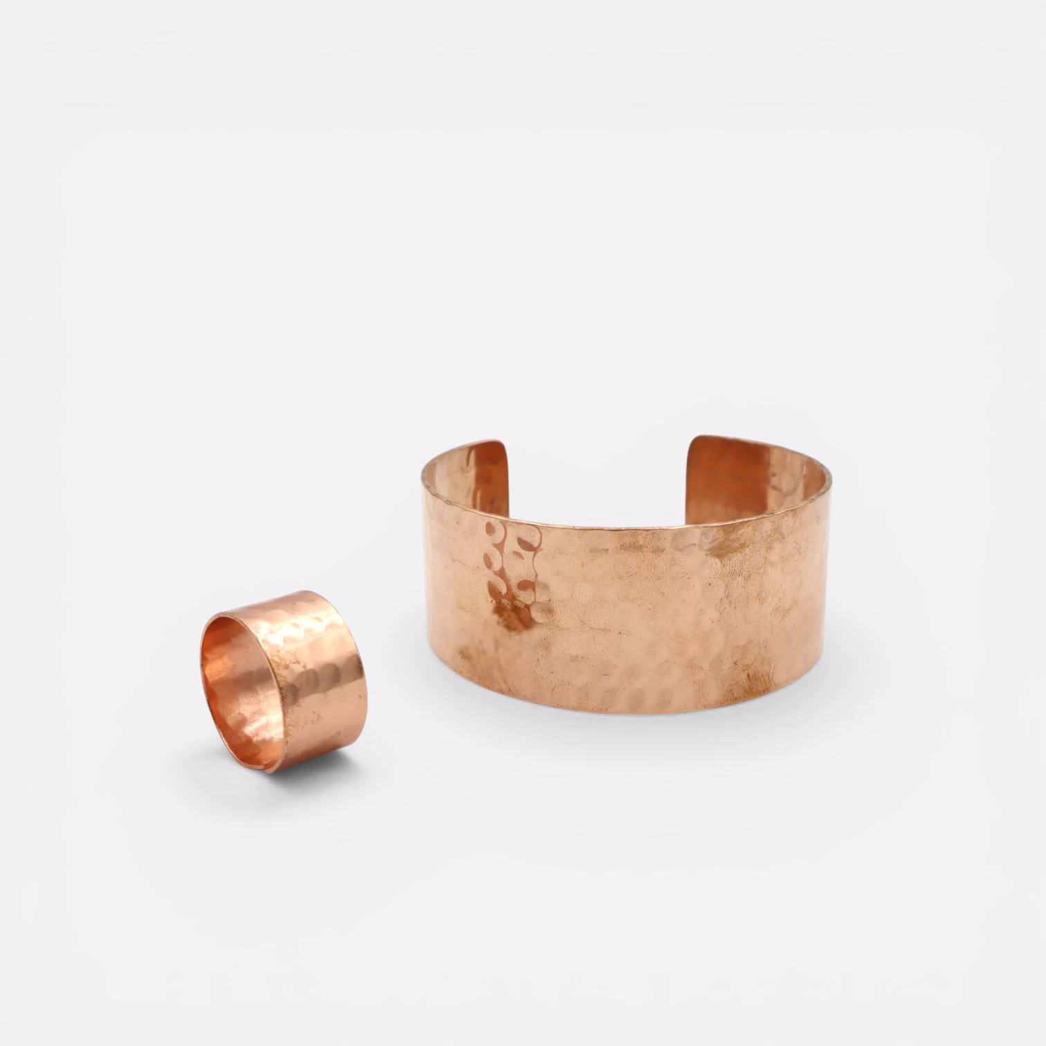 El Set Anillo Roma & brazalete Roma reúne dos piezas de cobre puro trabajadas artesanalmente, creadas para acompañarte como símbolos de fuerza, protección y equilibrio interior.