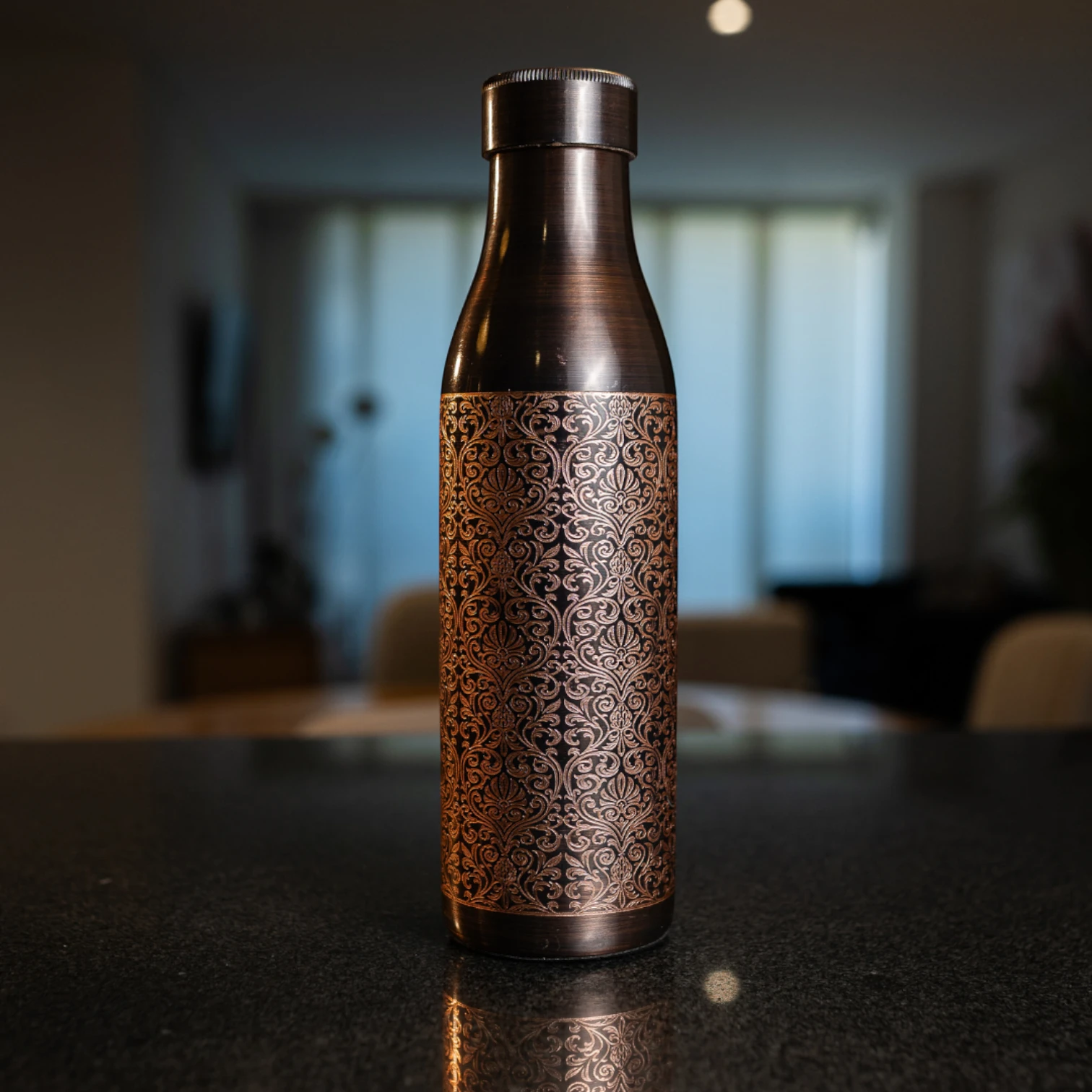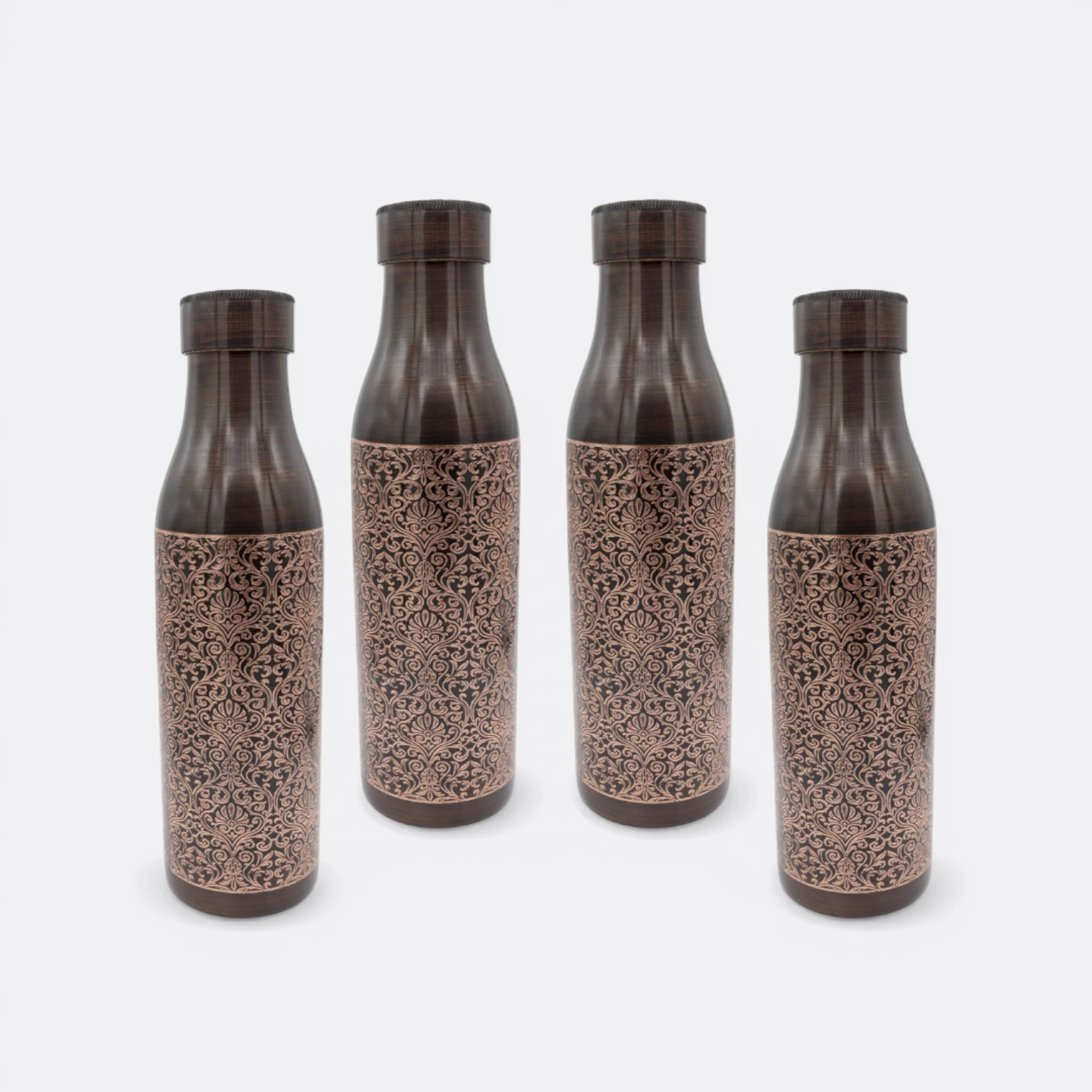 Set x4 Botellas Kashmir, piezas elaboradas en cobre, decoradas con un diseño grabado que evoca armonía, belleza y conexión con la naturaleza. Pensadas para acompañarte en tu rutina diaria, invita a vivir la hidratación como un acto consciente de equilibrio y bienestar interior.