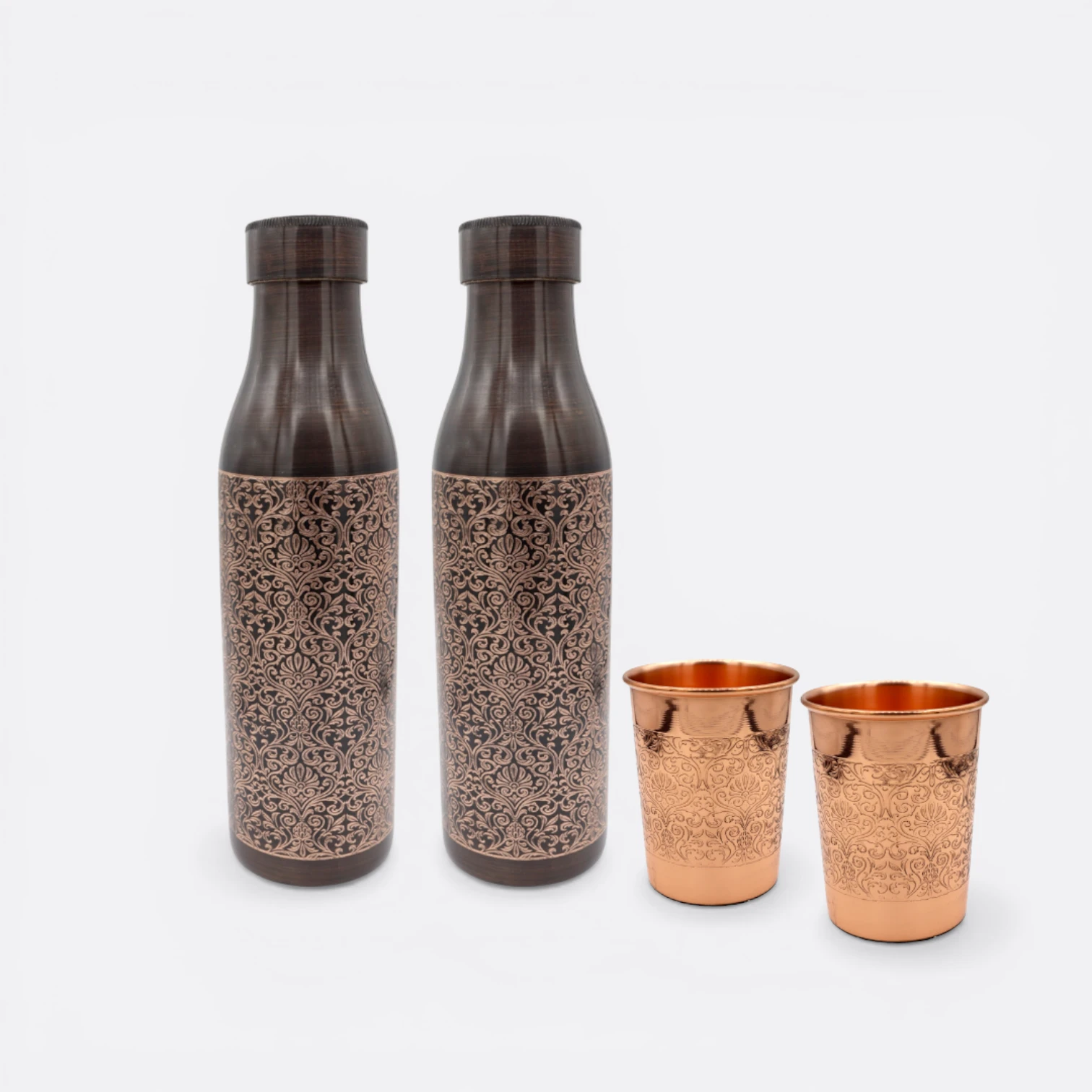 Set Botellas y Vasos en cobre, una combinación funcional y consciente para acompañar tu hidratación diaria.