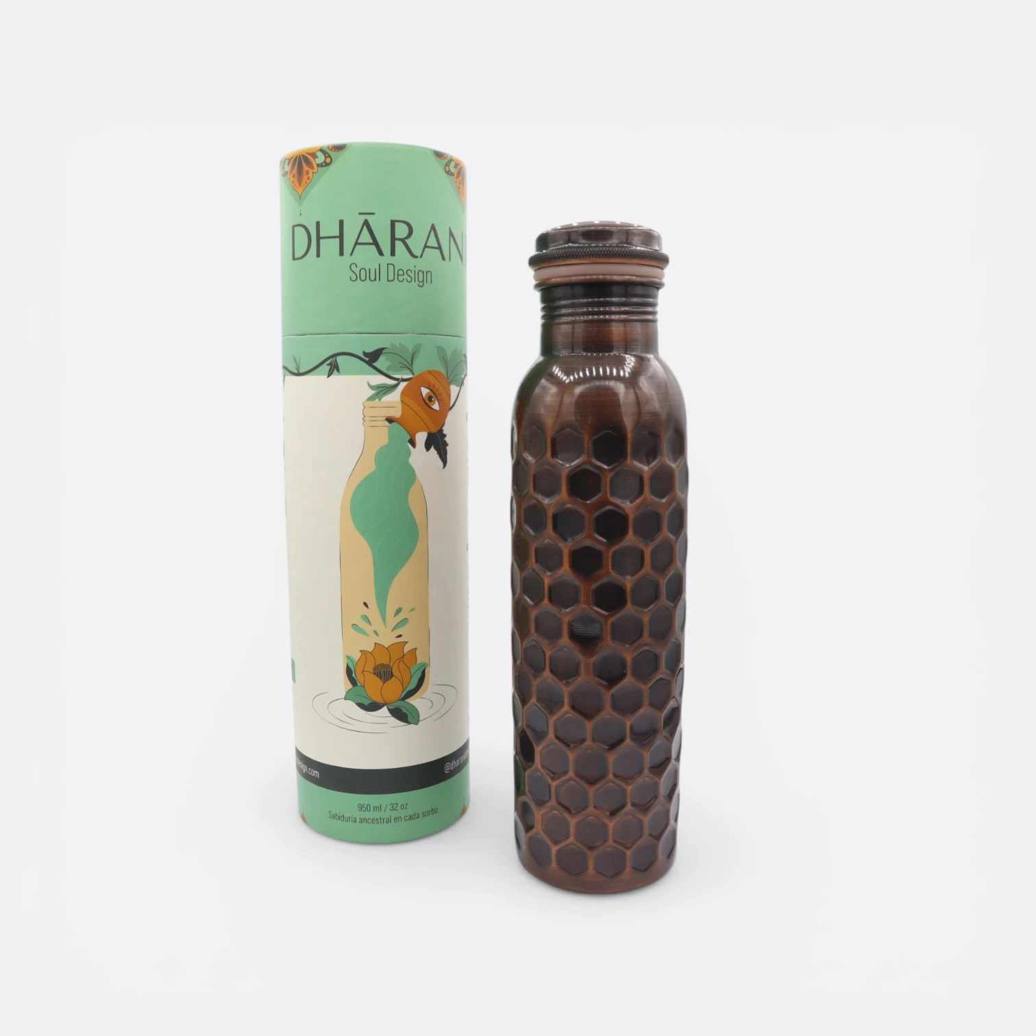El cobre puro tiene propiedades antimicrobianas, alcalinizantes y energéticas, reconocidas desde la tradición ayurvédica, donde se cree que el agua almacenada en cobre absorbe parte de su energía vital, ayudando a equilibrar los tres doshas del cuerpo (Vata, Pitta y Kapha).