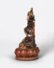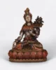 Esta figura muestra a Tara Blanca en posición de loto, con una flor de utpala y gestos que irradian bendiciones. Su rostro transmite paz y sabiduría maternal. Decorada con detalles en blanco, oro y matices cálidos, la estatua se presenta sobre un loto que simboliza pureza y renacimiento. Los finos adornos que lleva representan su conexión con los planos superiores de conciencia.